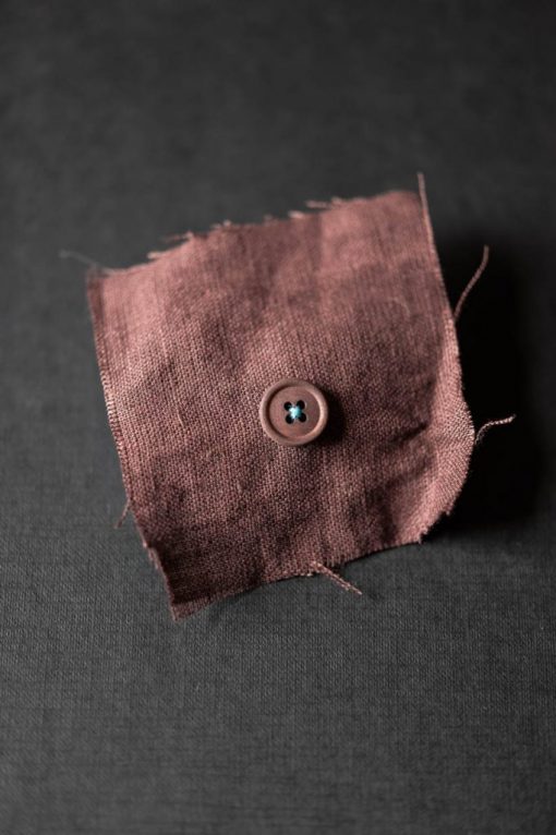 Hübscher kleiner Knopf, der passend für das Leinen Oxblood gefärbt ist. Der Knopf hat eine tolle matte, etwas kreidig wirkende Oberfläche. Er passt aber natürlich auch zu vielen anderen Leinenstoffen. Der Knopf ist zu 100% aus natürlichem Material hergestellt, sehr stabil und hat eine kratzunempfindliche Struktur.