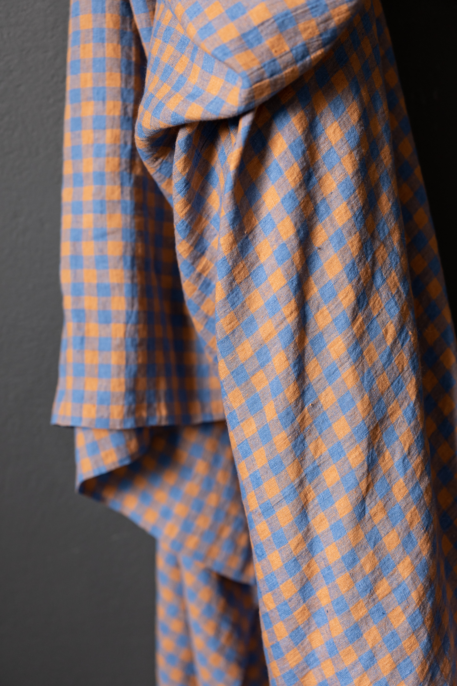 Wunderschönes weiches Leinen Sundae von Merchant and Mills. Sundae hat ein hübsches Karomuster in den Eisbecherfarben Blassorange und Himmelblau. Die Karos haben eine Größe von ca. 13 x 13mm. Das Leinen ist vorgewaschen, damit es noch weicher wird, es ist produziert in kleinen Webereien in Europa. Sundae ist toll für Kleider, Röcke, leichte Oberteile und Shirts.