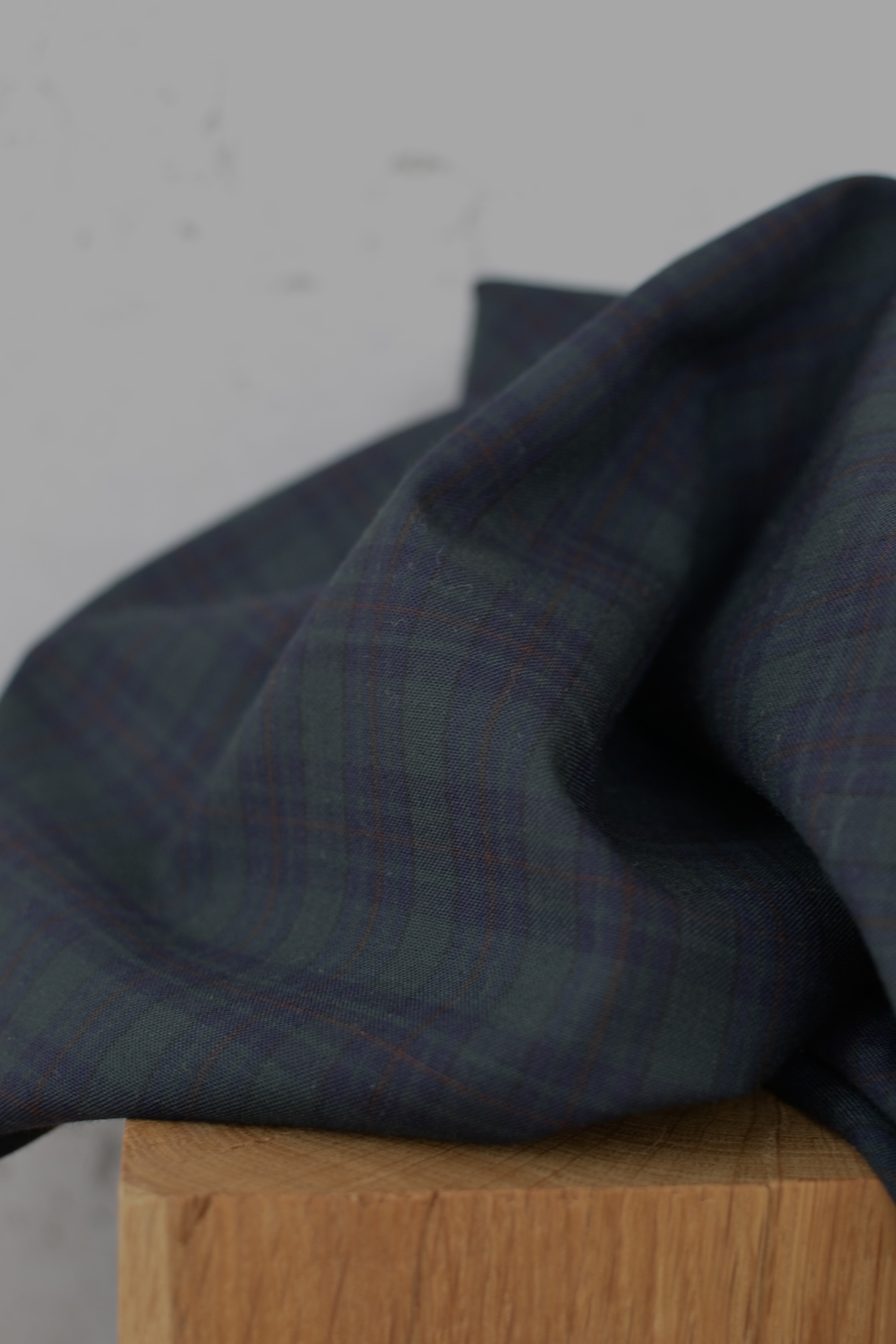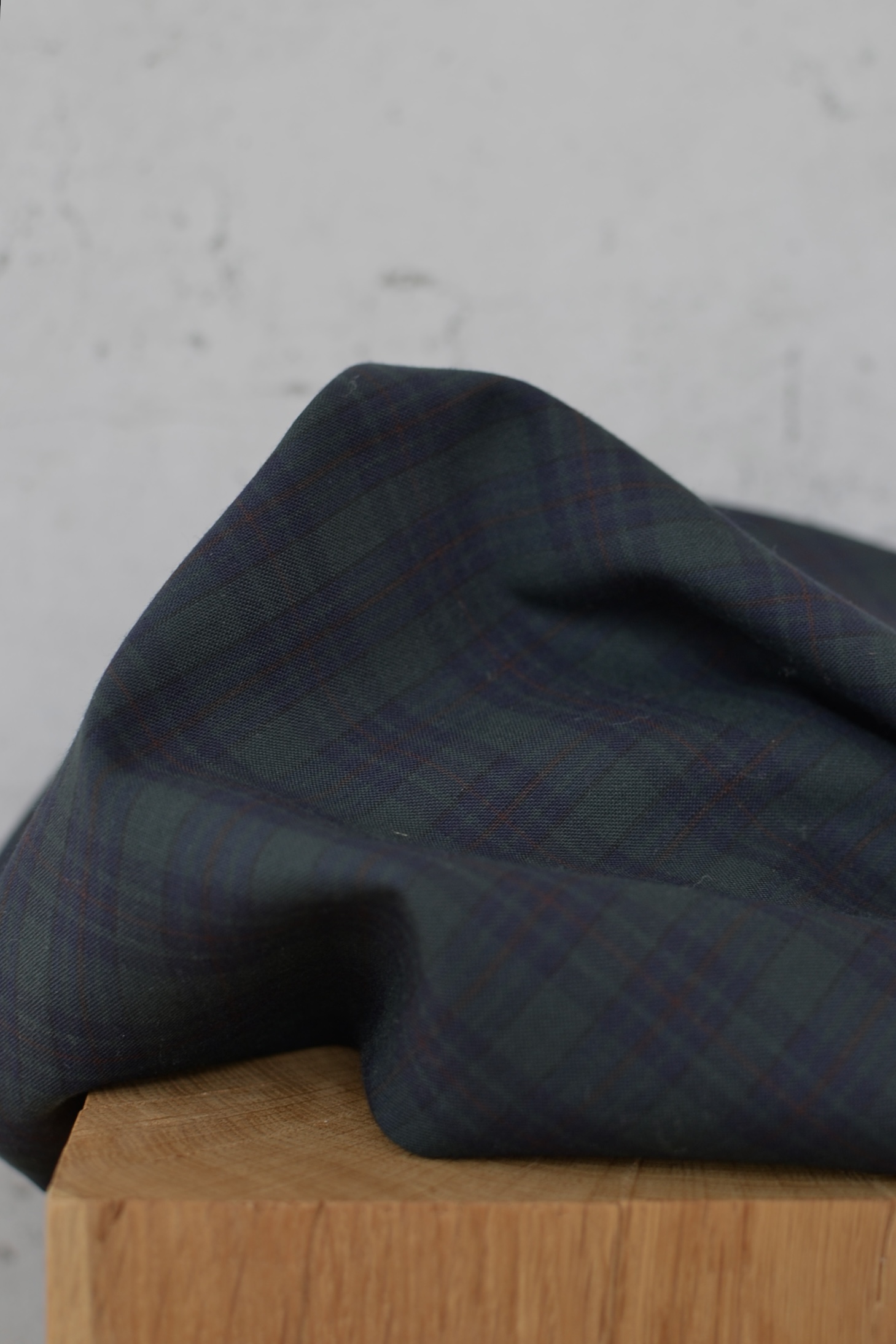 Feine Schurwolle, hergestellt für ein italienisches Designerlabel und nun nicht mehr gebraucht. Dieser tolle Stoff hat ein schickes Tartanmuster in den Hauptfarben Blau und Grün. Die Karos außerdem durchzogen von einem dunkelroten feinen Streifen. Jedes Karo hat eine Größe von 1,5cm x 2cm und wird abgewechselt von dunkelgrünen Streifen in 1cm Breite. Der Stoff fällt herrlich fließend, ist weich und so richtig klassisch. Der Stoff kann perfekt mit unseren kuschelweichen Merinostricks , zB. in der Farbe Hellgrau, oder Leinenstoffen kombiniert werden. Er eignet sich perfekt für Hosen oder auch Röcke.